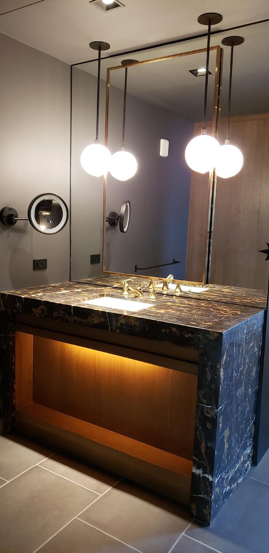 left: vanity in 1-bedroom guestroom