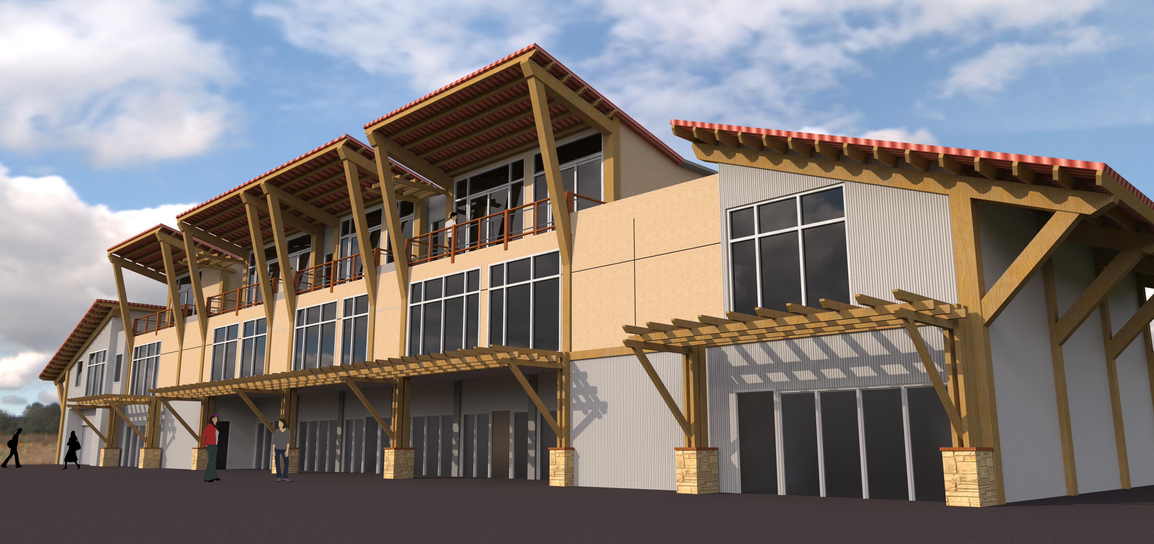 facade from entry courtyard, rendering by