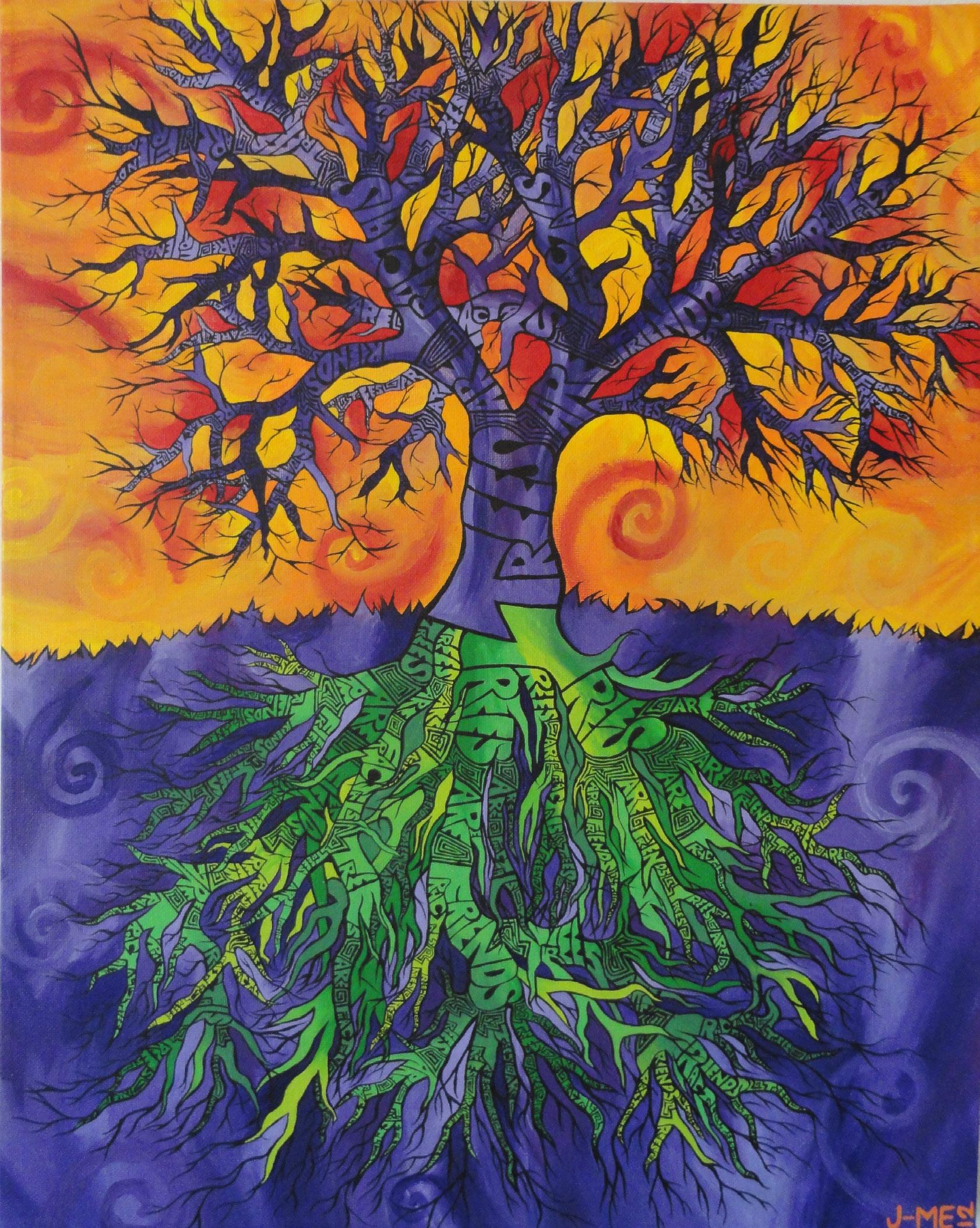 left: “Trees Are” acrylic on canvas, entered into multiple college art shows