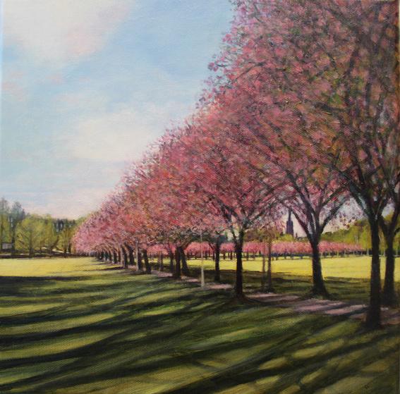 Light and shade in Inverleith Park Oil on linen 40cm x 40cm