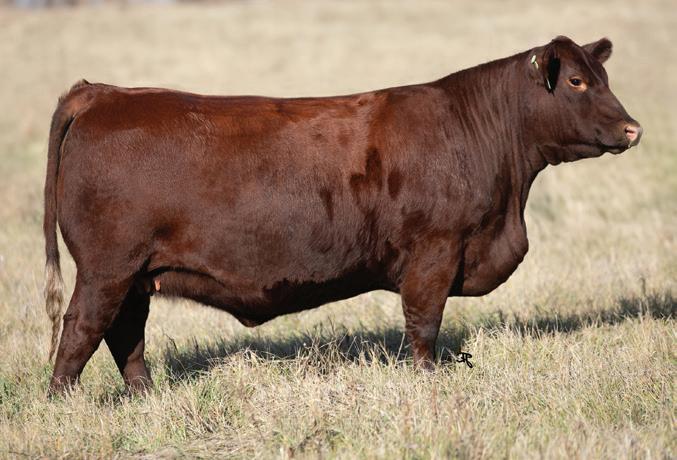 One of the youngest bred heifers in the o ering. is heifer ties together two of our strongest cow families. A Fancy and Miss Deal pedigree with a little Red Flying K Max 110C in there for good measure. Her Dam was in our 2022 show string and has grown into an ideal young up and coming cow. is female is moderate in type but we really appreciate her correctness, structure and capacity. Her pedigree says performance, so don’t be surprised if she brings in a calf twice her size come fall.
