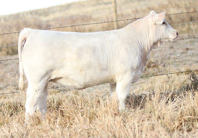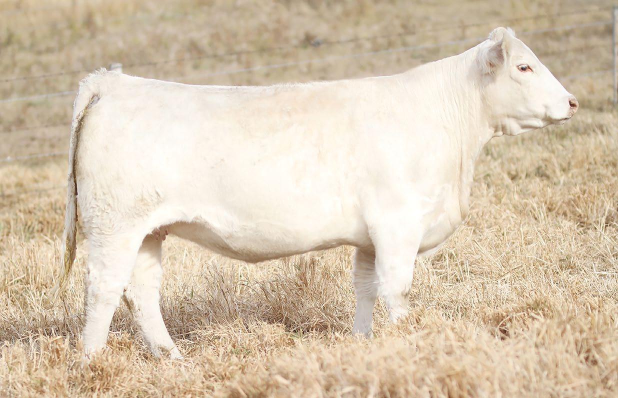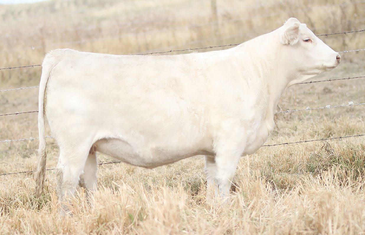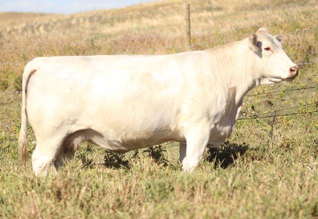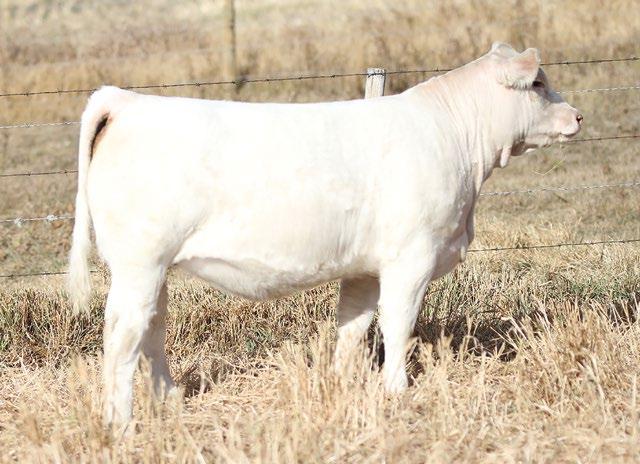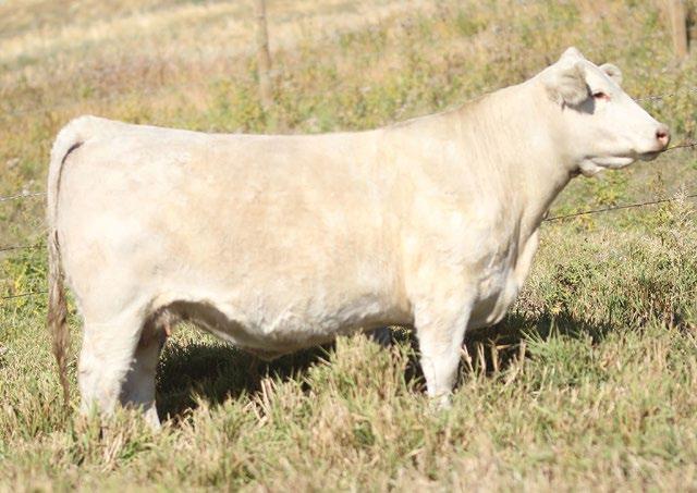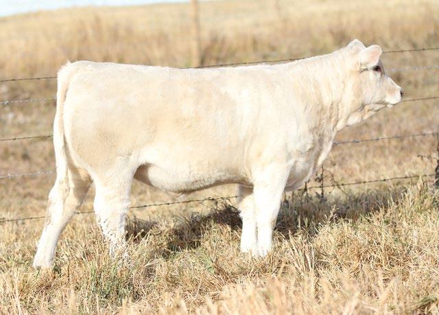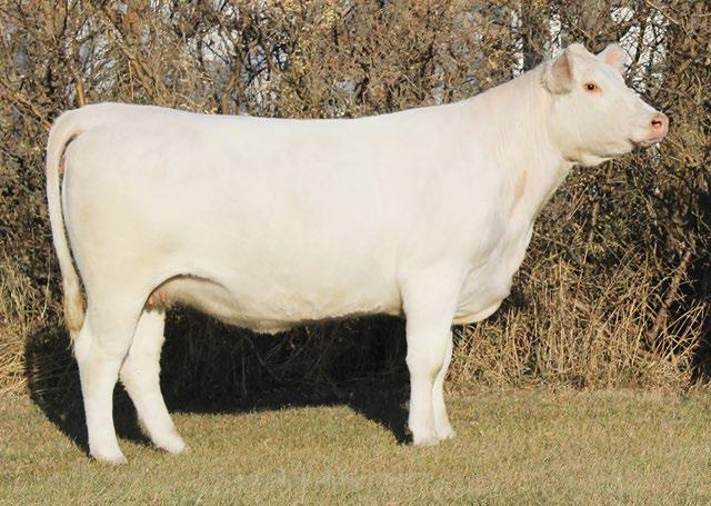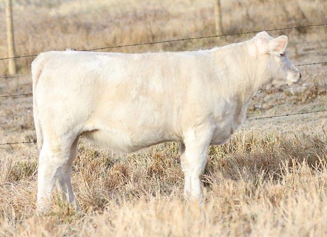 I write these footnotes and try to be different and not always repeat myself. So I am going to share a story with you. I followed the Charolais Queen, Thomas MS Impressive 0641 for years, as she made herself famous being the mother of so many great white animals, Turton, Ivory Angel, Rapid Fire, Kimmy Cakes, Bottoms Up, and many, many more. Justine and I went to Jr nationals in Min nesota the summer of 2015, it was a great time and met some incredible peo ple, and seen some very special cattle. We had the opportunity to tour Polzin Cattle and we laid our eyes on our wonderful PZC Lily 5013 ET, and later that fall purchased her and needless to say that worked out extremely well. But we also had the opportunity to see Thomas MS Impressive 0641 that day as well. A very Impressive beast! (pardon the pun). Since that day we have tried adding as much blood from 0641 as possible, here is your chance! Bred April 14 to WC Benelli 2134 P ET. Due January 24 2023