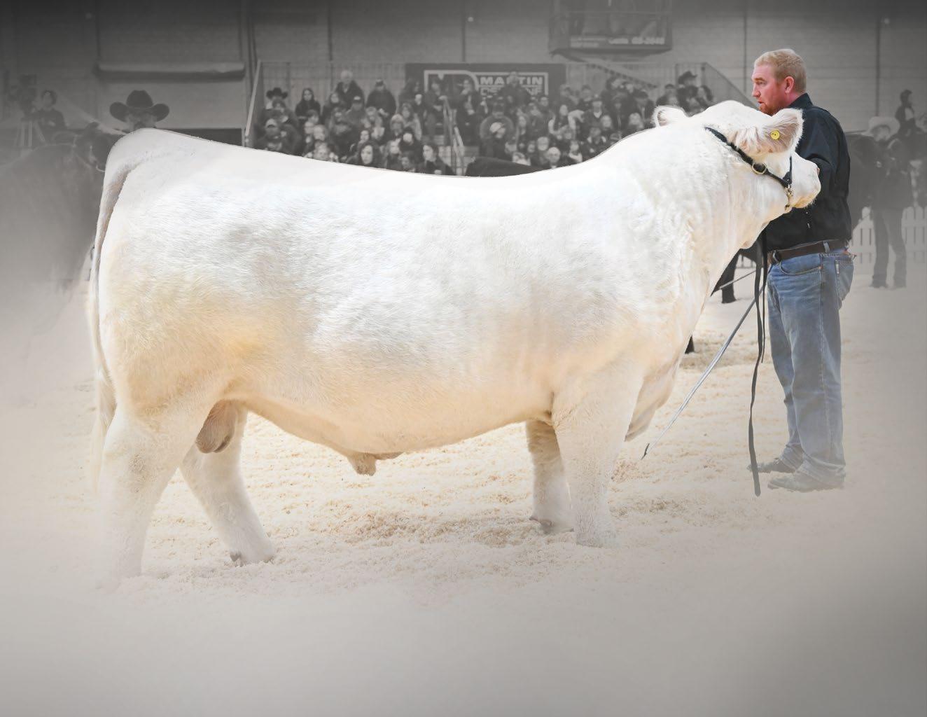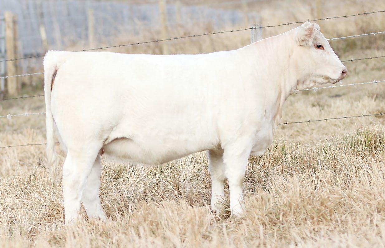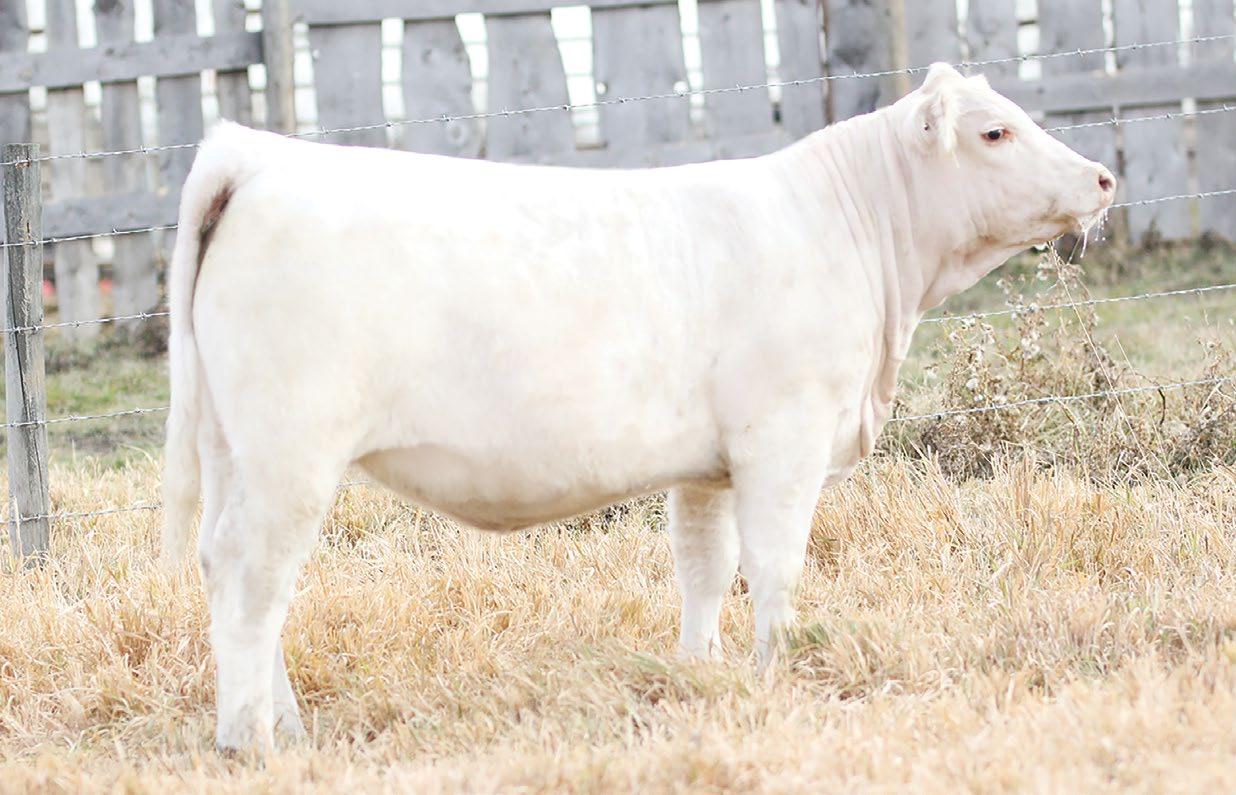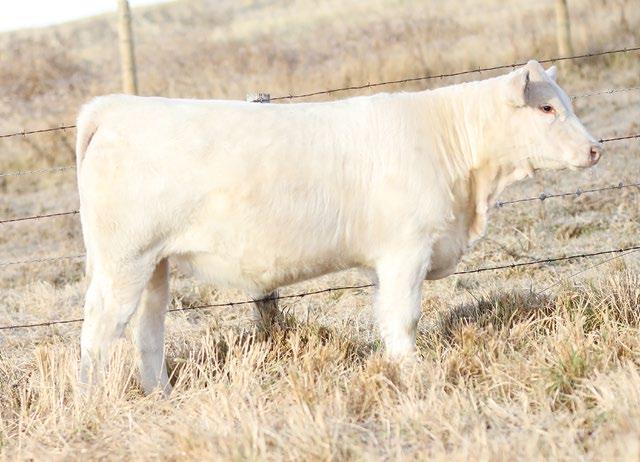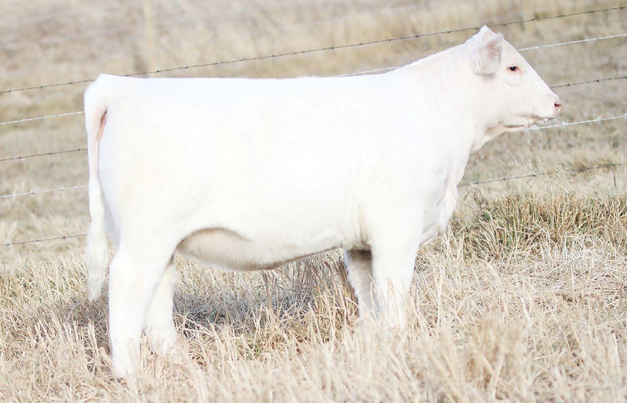 I write these footnotes and try to be different and not always repeat myself. So I am going to share a story with you. I followed the Charolais Queen, Thomas MS Impressive 0641 for years, as she made herself famous being the mother of so many great white animals, Turton, Ivory Angel, Rapid Fire, Kimmy Cakes, Bottoms Up, and many, many more. Justine and I went to Jr nationals in Min nesota the summer of 2015, it was a great time and met some incredible peo ple, and seen some very special cattle. We had the opportunity to tour Polzin Cattle and we laid our eyes on our wonderful PZC Lily 5013 ET, and later that fall purchased her and needless to say that worked out extremely well. But we also had the opportunity to see Thomas MS Impressive 0641 that day as well. A very Impressive beast! (pardon the pun). Since that day we have tried adding as much blood from 0641 as possible, here is your chance! Bred April 14 to WC Benelli 2134 P ET. Due January 24 2023