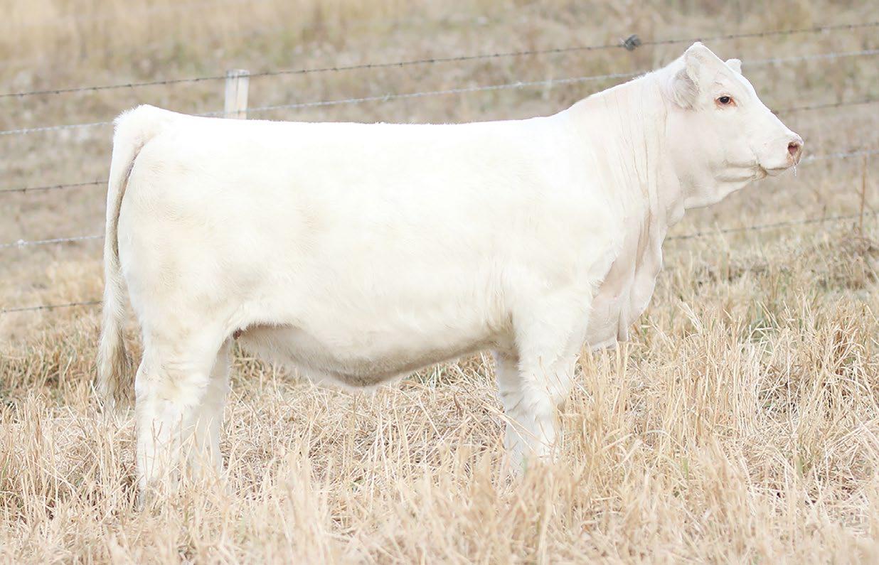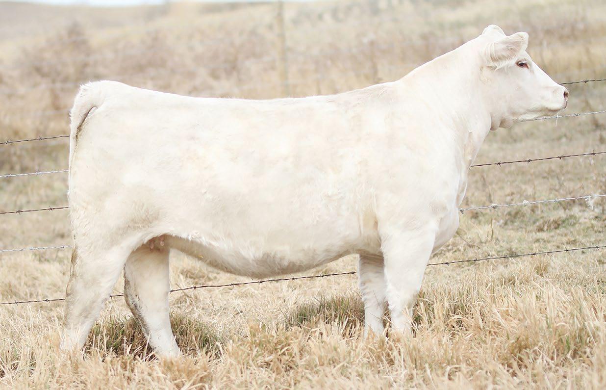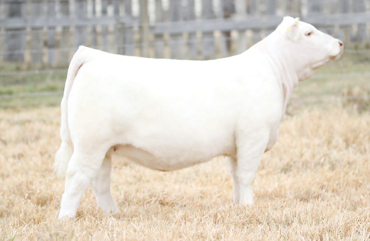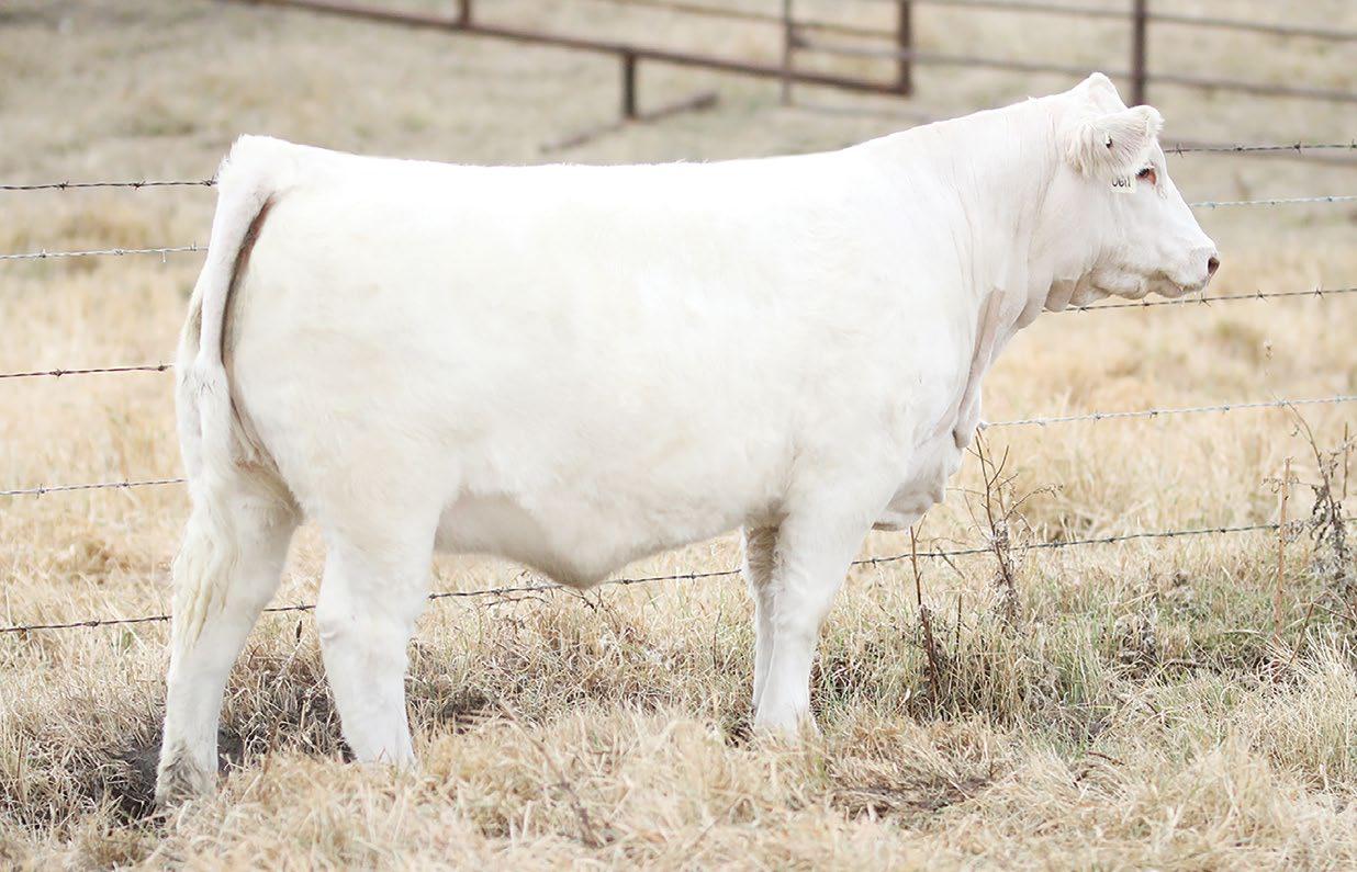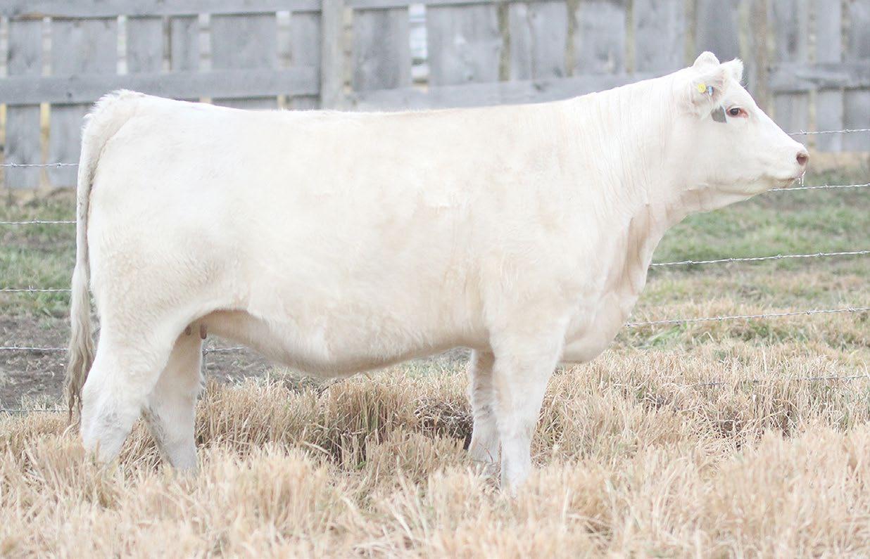 Really nice made female with extra depth, a real strong and well built udder. As time goes on many breeders look to add Pastor into pedigrees, as he was such a strong female making bull. Looking back you will find Pastor in her pedigree so to me that adds value to this female. Her service is exciting being mated to the $30,000 high selling PCC Innovation 123J. A young herd sire that is sure to leave a strong mark on the Charolais breed, being a son of the great Berkly Ann!