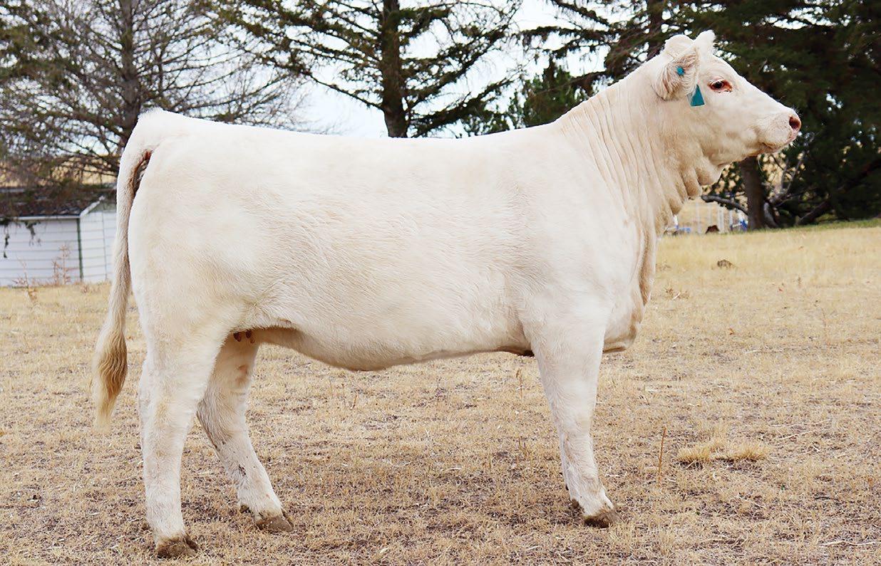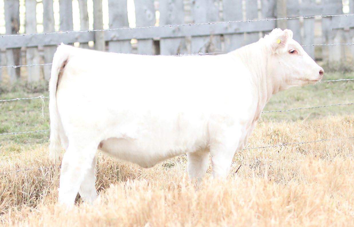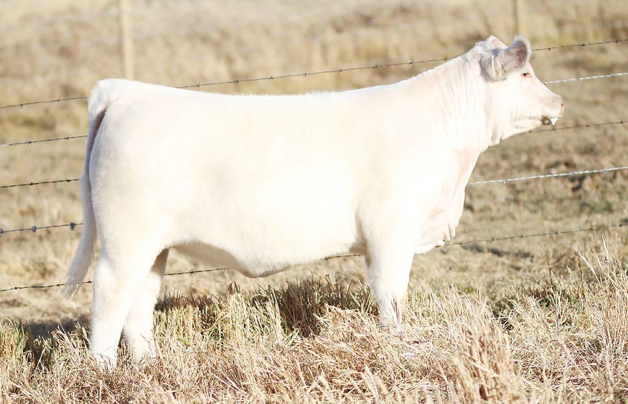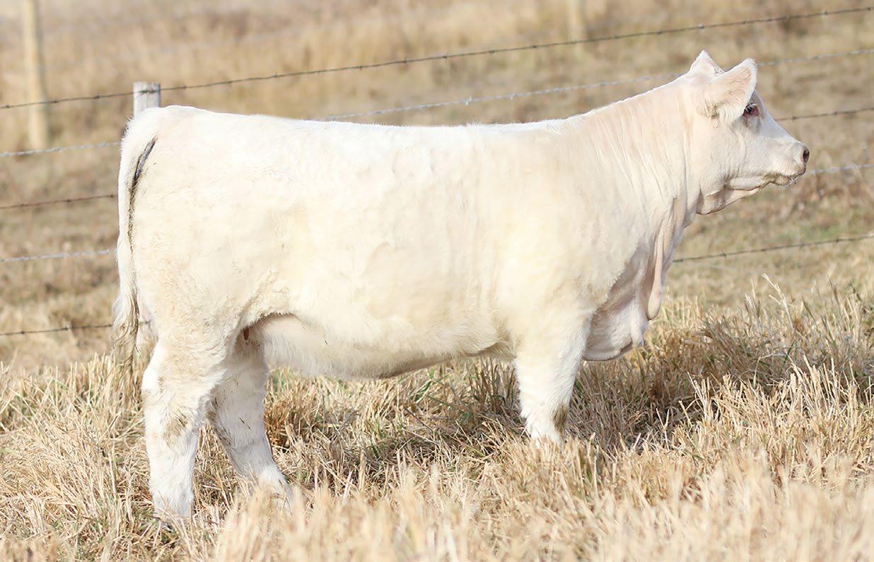 Really nice made female with extra depth, a real strong and well built udder. As time goes on many breeders look to add Pastor into pedigrees, as he was such a strong female making bull. Looking back you will find Pastor in her pedigree so to me that adds value to this female. Her service is exciting being mated to the $30,000 high selling PCC Innovation 123J. A young herd sire that is sure to leave a strong mark on the Charolais breed, being a son of the great Berkly Ann!