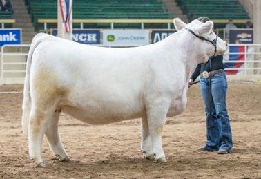 Most well known Charolais female in the entire Charolais industry, Berkly Ann is a two time Supreme Champion and World Champion herself. She has gone on to produce Champions and High Sellers at a rate that has never been seen before in the Charolais world. Her most recent accomplishments her daughter being Supreme Grand Champion Female at Farmfair and her son PCC Husk 218J being Grand Champion Charolais Bull as well as two high selling females this year, one at $45,000 and another at $20,000.