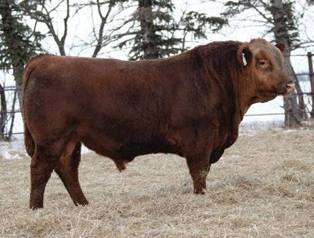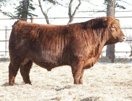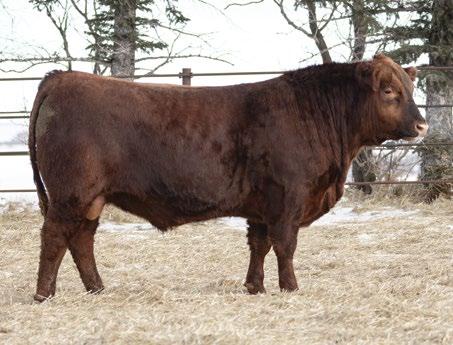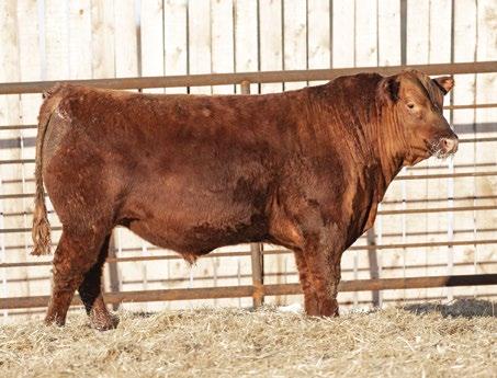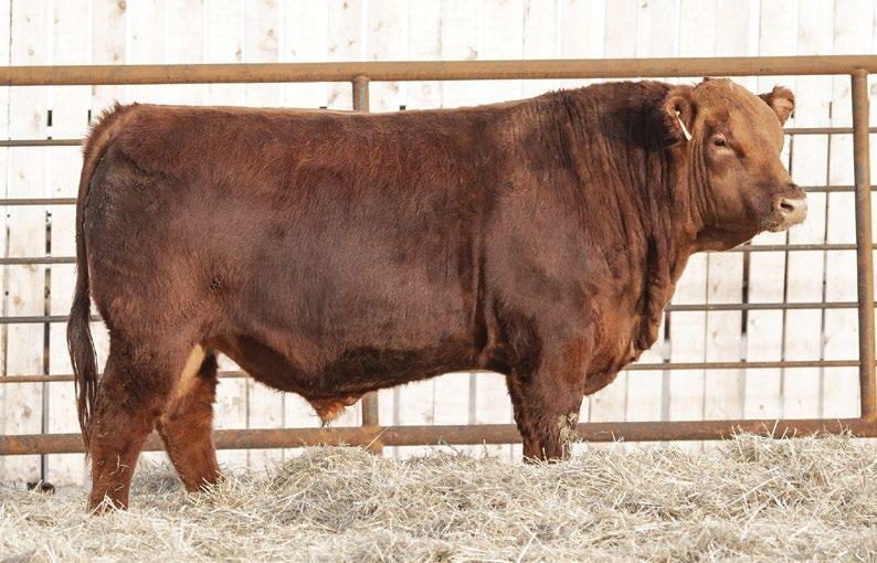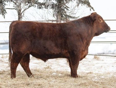 One of the longest made bulls in the offering. His mother is the kind that goes about her business each year raising calves that wean heavy. Lambo is smooth made and has the deep dark red color that catches your eye from across the pasture.