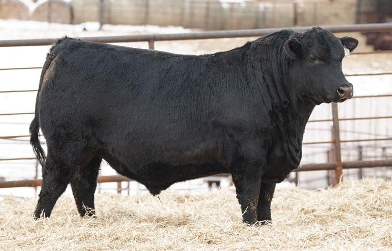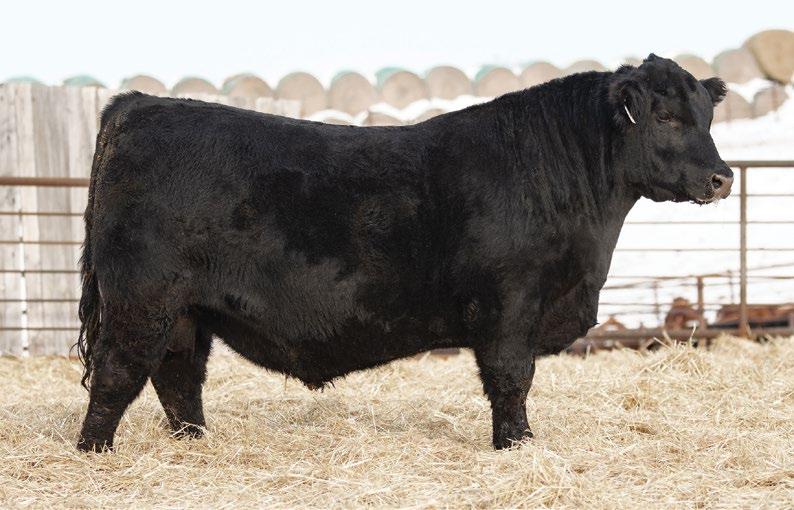 foot. His structure indicates power and performance from the width of his chest floor moving back to his bold sprung rib cage and into his deep muscle pattern. He’ll add pounds to a calf crop come fall.