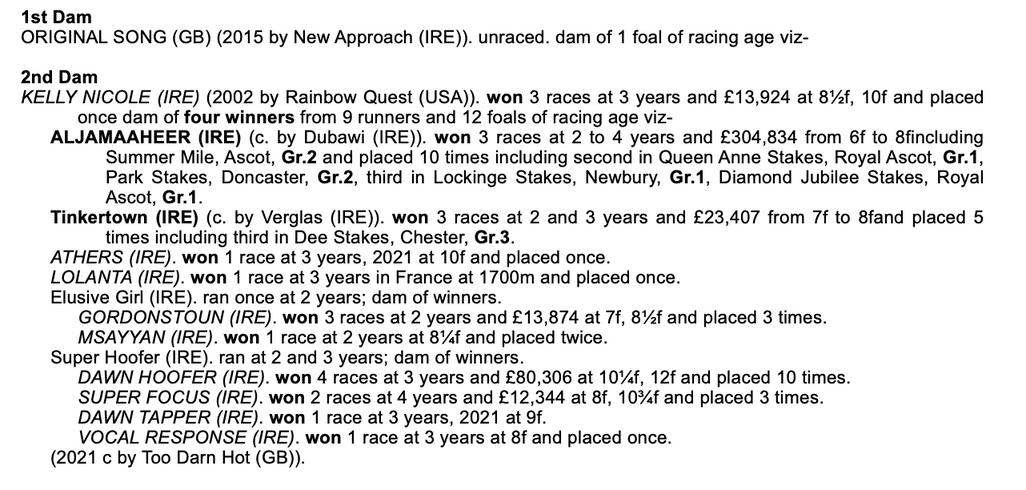 New Bay / Original Song F CLICK HERE TO WATCH VIDEO PEDIGREE ANALYSIS LOT 1755 Sire Line - Damsire line nicks New Bay x Galileo 7 rnrs, 3 wnrs Dubawi x New Approach 31 rnrs, 18 wnrs, 4 SHs, 4 SWs, 3 GWs, 1 G1Ws Dubawi x Galileo 178 rnrs, 107 wnrs, 30 SHs, 15 SWs, 12 GWs, 3 G1Ws