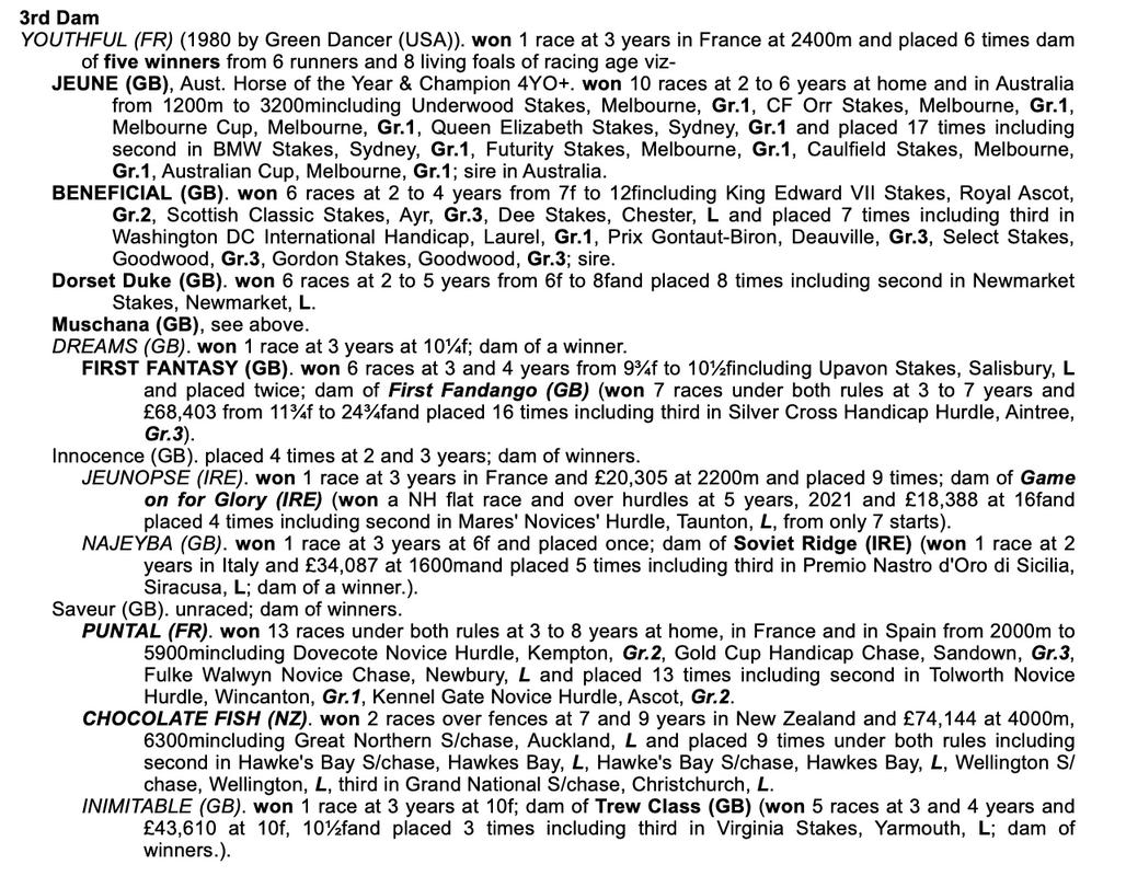 Zoustar / Lacarolina F CLICK HERE TO WATCH VIDEO PEDIGREE ANALYSIS LOT 1381 Sire Line - Damsire line nicks Zoustar x Kendor 2 rnrs, 2 wnrs ALL TIME LEGEND, STAR FALL