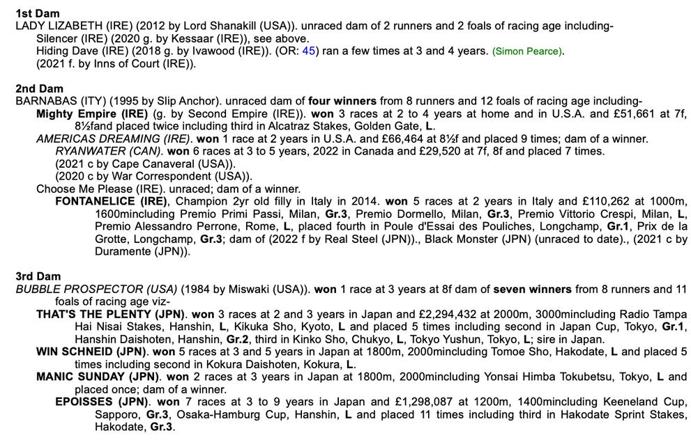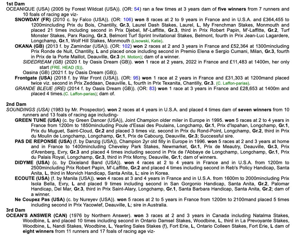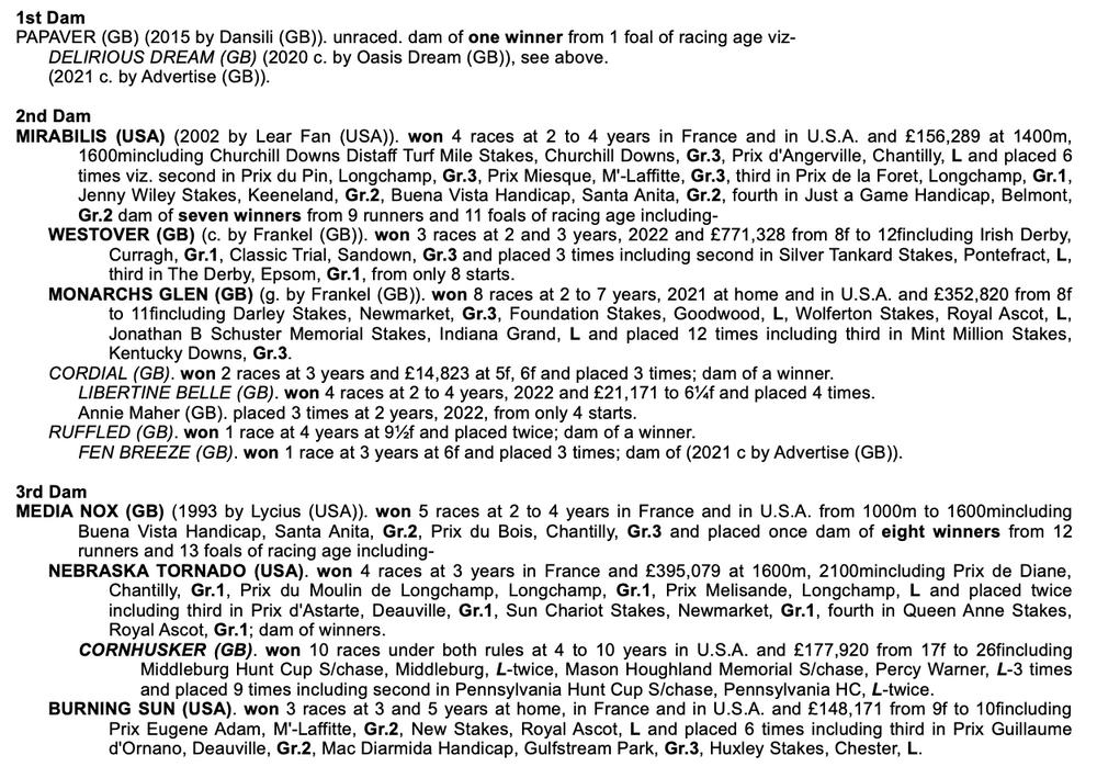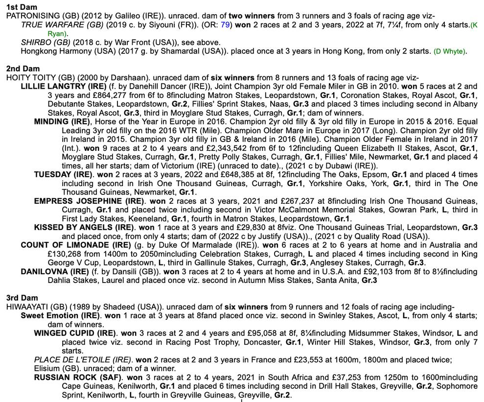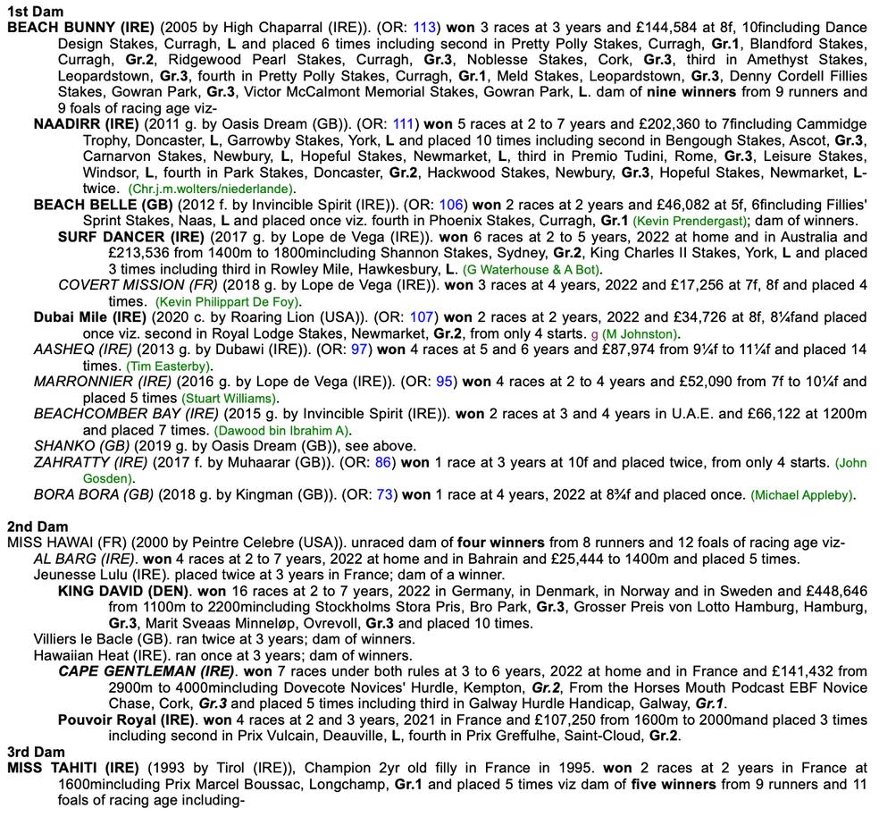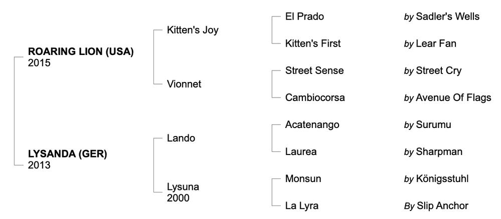 Notes: Pedigree received boosts recently with half brother Surf Dancer winning the Gr.2 Shannon Stakes over 1500m at Rosehill on Sep 24 for Gai Waterhouse & Adrian Bott, and dam’s Roaring Lion half brother Dubai Mile finishing 2nd of 4 (3rd won Gr.3 Zetland Stakes since) in the Gr 2 Royal Lodge for Charlie & Mark Johnston.