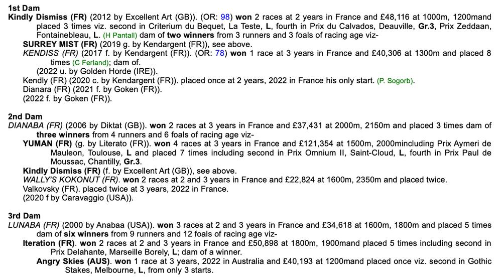Preferred distance: 12f Preferred ground: Any Trainers notes: Worn cross noseband Surrey Mist could make a group horse in Europe, and could be a nice staying prospect in Australia. Potentially could be a NH prospect.