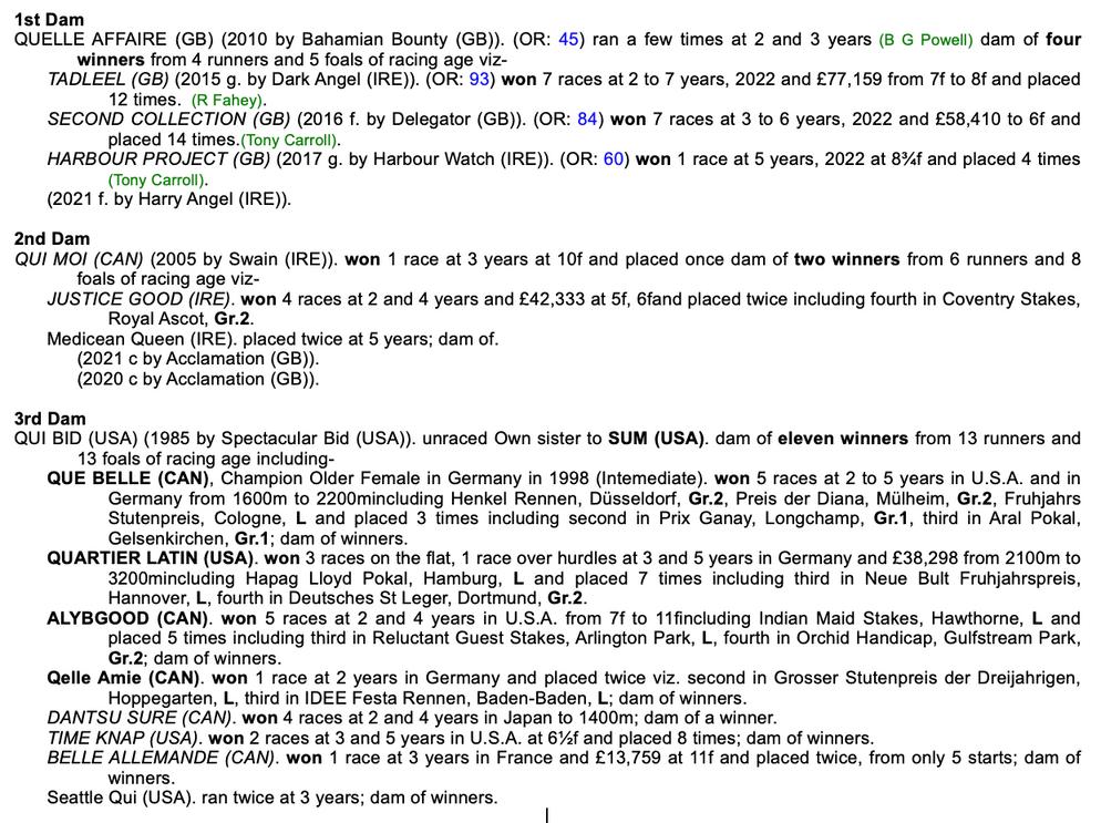 Preferred ground: Good/good to firm Trainers notes: Clearly stayed 7f on debut but did race prominently (before showing a willing attitude) and given he’s by a sprinter, out of a mare who only ran over 6f and a sister to Mecca’s Angel and Markaz (their dam also a winning sprinter), there must be an angle for trying him over 6f.