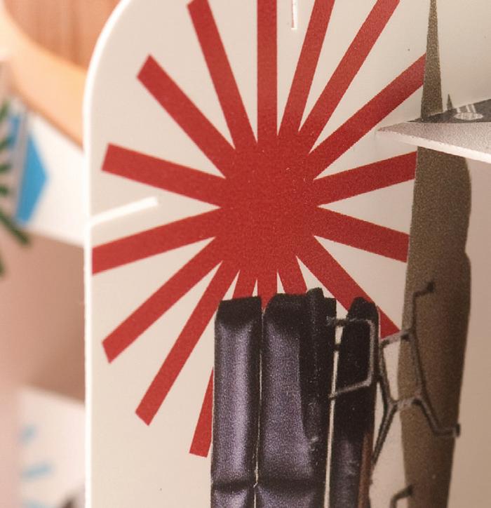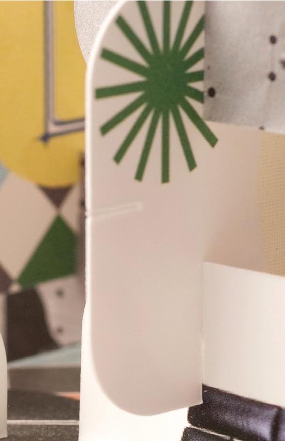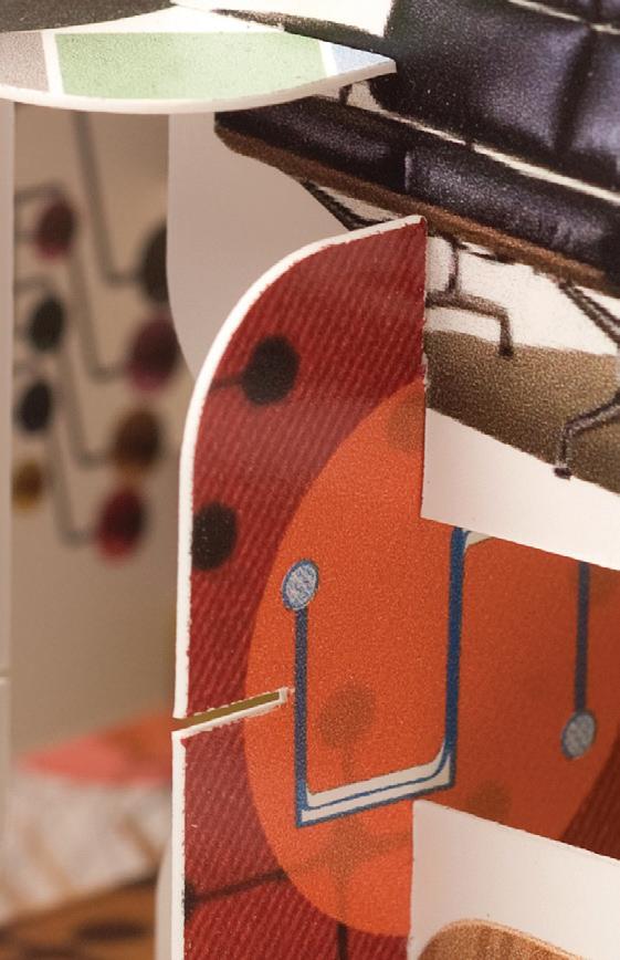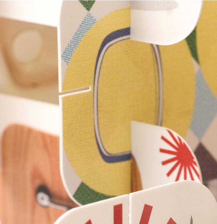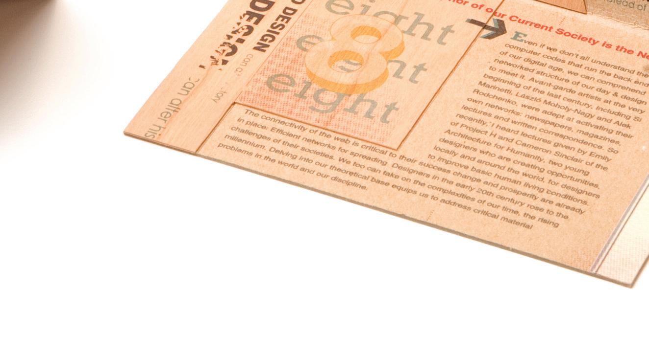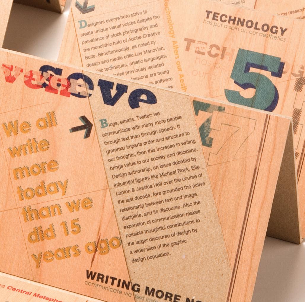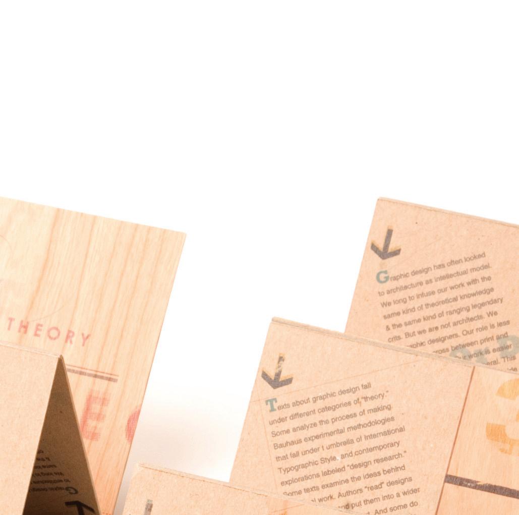 The accordion composition is printed on cherr y wood veneer that’s inter twined with chipboard to create a layer e ect that ar ticulates the theor y behind the design while expressing the body of the ar ticle “Graphic Design Theor y?” written by Helen Ar mstrong.