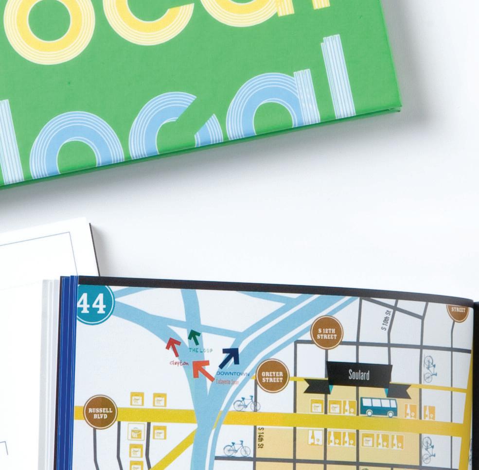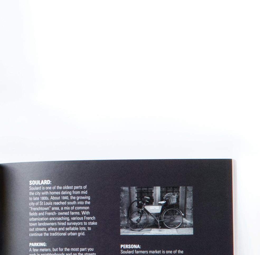 The communication piece was created while I lived in St. Louis, Missouri, to provide an inner city view for travelers and visitors to utilize when experiencing the city and what the local neighborhoods have to offer. My intent was to provide a vehicle that was organized by the neighborhoods and to provided listings of the local boutiques and independent restaurants.