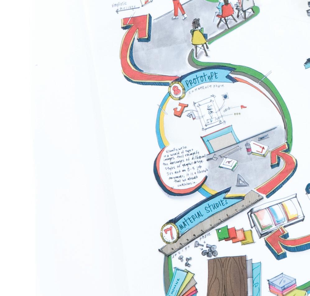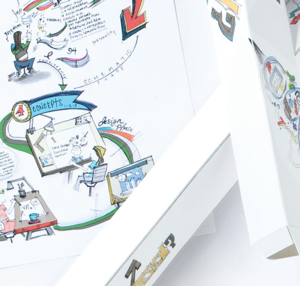 This poster was designed to communicate the graphic design creative process to a teen audience. This is based on my own creative methodology. The poster is contained in a triangular shaped package; the graphics on the package design compliment and are consistent in tone with the poster illustration.