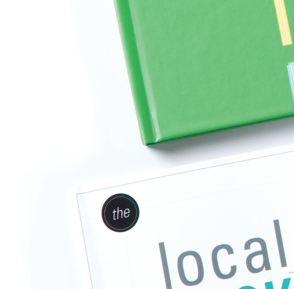 The Local Book measures 7" x 7" and printed on Mohawk Premium, Neon White Brightness,100lb Cover.