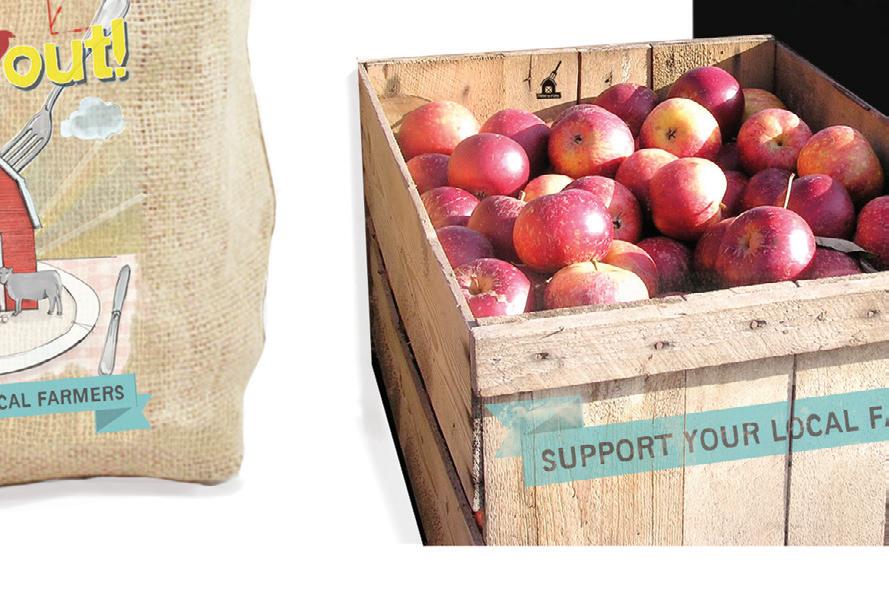 The campaign components ranged from posters at the local far mers market, to bus stop posters throughout downtown Kansas City, to far mers market food crates, to sustainable burlap market bags and the signage at the entrance of the far mers market.