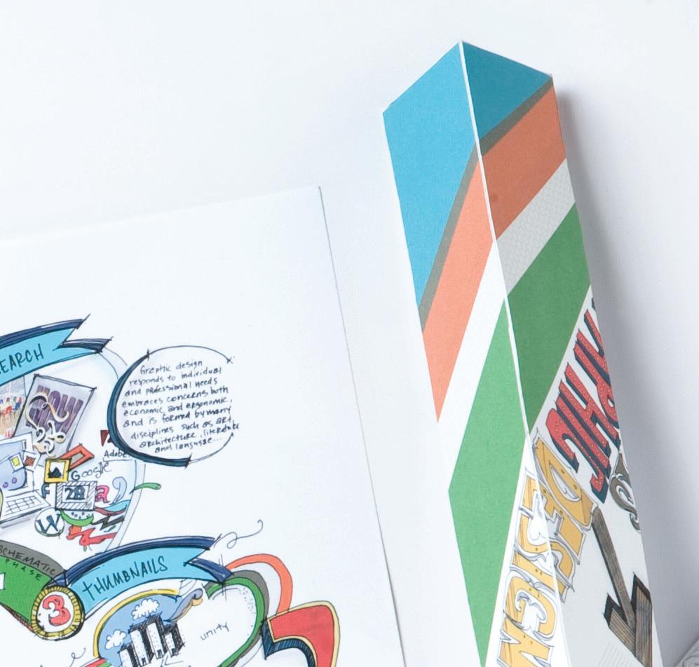 The process book size is 8.25" x 9.75" and printed on Mohawk Premium, Bright White,100lb Cover