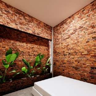 Photos By : Project Loca on : Project Status : Project Time : Team Design : Project by : Kampung Parung Jambu, Bogor Completed Build August 2020 - July 2021 Mario Wibowo Ismail Solehudin, Jamilah Uswatun Hasanah Ismail Solehudin Architecture Stack by Step Red Zone Boarding House RED ZONE02