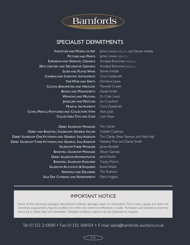 Tel: 01332 210000 • Fax: 01332 368424 • E-mail: sales@bamfords-auctions.co.uk 212