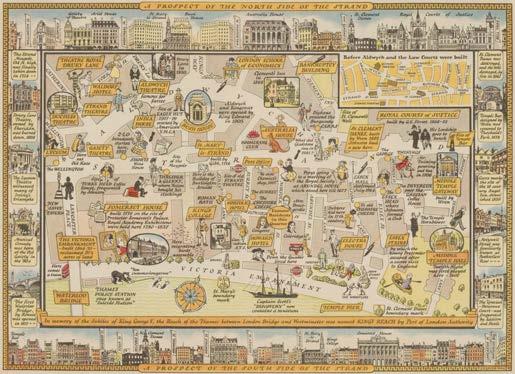 2 Baynes (Thomas Mann). A Lithographic Sketch of the North Bank of the Thames, from Westminster Bridge to London Bridge, shewing the Proposed Quay, and some other improvements suggested by Lieut-Colonel Trench; to which are annexed, a survey of that part of the river, and a prospectus of the proposed plan, London: published Hurst and Robinson, 90 Cheapside and 8 Pall Mall, January 1825, printed title and single leaf of descriptive text by F. W. Trench, ten lithographic plates with contemporary wash colouring, and a folding uncoloured lithographic map bound at the rear, plates with old soft folds, some spotting and staining throughout, contemporary paper wrappers with the printed title label to the upper cover, later endpapers and with a further early 20th-century quarter cloth binding over marbled boards, some old folds to the boards, the whole contained in a paper and card chemise with a facsimile of the title label to the upper cover, oblong folio