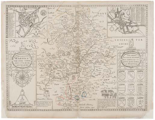 6 Camden (William). Britannia: or a Chorographical Description of Great Britain and Ireland, together with the Adjacent islands..., 2 volumes, 2nd edition, revised, digested and published with large additions by Edmund Gibson, London: Printed for Mary Matthews, for Awnsham Churchill, and sold by William Taylor, 1722, engraved portrait frontispiece to volume 1, titles printed in red & black, 51 uncoloured engraved double page maps by Robert Morden, 10 plates of coins and antiquities, occasional light damp staining, small areas of marginal worming (mostly all repaired with archival tape) mostly affecting lower margins in volume 1 bookplate and ownership signatures plus later signatures to pastedowns including W. Strange 1802, Elizabeth Strange 1905, Hedley S. Haynes 1938, David Parkinson 2002, contemporary panelled calf, rebacked, folio Chubb, CXV.