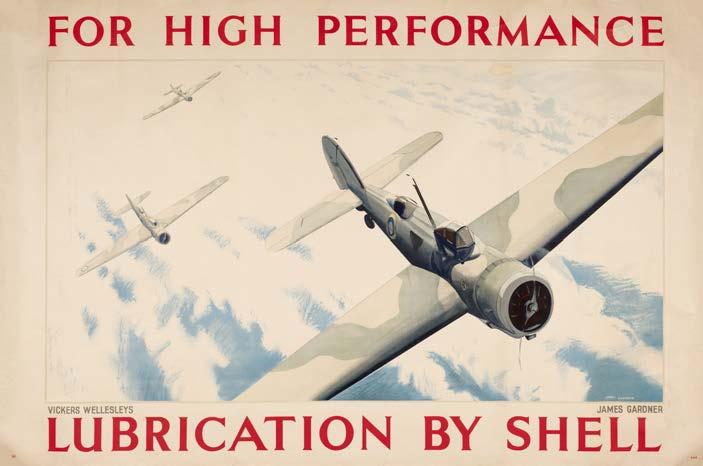 21* Buhler (Robert, 1916-1989). For High Performance Lubrication By Shell, 1938, lithographic poster, numbered 529, showing Hawker Hurricanes in flight, 76 x 112 cm, unframed and rolled, minor age wear (1)