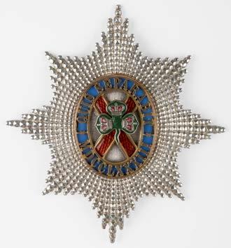 505* The Royal Irish. A fine Victorian 18th Foot gilt metal shoulder belt plate of the Royal Irish Regiment, featuring a crowned shamrock wreath, with an Irish harp and XVIII beneath on a dark blue enamel ground and the motto ‘Virtutis Namurcensis Praemium’ (The Reward of Valour at Namur) with a sphink beneath inscribed ‘Egypt’ and ‘China’, laid on a white metal faceted star, the reverse with two lugs and two studs (1)