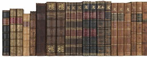 444 New Testament [Latin]. Novum Testamentum vulgatae editionis, juxta exemplum Parisiis editum apud fratres Barbou. Sumptibus Academiae Oxoniensis, in usum cleri gallicani in Anglia exulantis. Cura et studio quorundam ex eodem clero Wintoniae commorantium, Oxford Clarendon Press, 1796, errata leaf present, upper pastedown with Trelissick House bookplate, 19th-century half calf, extremities slightly rubbed, 8vo, together with: Parkhurst (John), A Greek and English Lexicon to the New Testament: in which the words and phrases... are distinctly explained, and the meanings... authorized by references to passages of scripture... and confirmed by citations from the Old Testament and from the Greek writers..., prefixed, a plain and easy Greek Grammar..., London: W. Faden, B. Law, E. and C. Dilly, J. Robson and F. Newbery, 1769, two ink stamps to title, contemporary calf, rebacked, preserving remnants of original spine, 4to, Bourignon (Antoinette), An Abridgment [sic] of the Light of the World: containing the Conferences which M. Antonia Bourignon had with Mr. Christian de Cort, Late Director of the Isle of Noordstrand, Superior of the Oratory, and Pastor of St. John, at Mechlin. In three parts. To which is prefixed a preface to the unprejudiced reader, of Every Sect and Party by Joseph Whittingham Salmon, London: printed by R. Hindmarsh, No. 32, Clerkenwell-Close, printer to the Society for Promoting the Heavenly Doctrines of the New Jerusalem Church, 1786, engraved portrait frontispiece, some toning and light damp-staining, contemporary reversed calf, joints and spine cracked, some wear to extremities, 8vo, plus other 18th and 19th-century theology, including sermons, in leather bindings, mostly 8vo, plus a small selection of lectures and sermons etc. by C. H. Spurgeon and related works, in original cloth, 8vo Approximately 80 volumes (3 shelves) £300 - £400