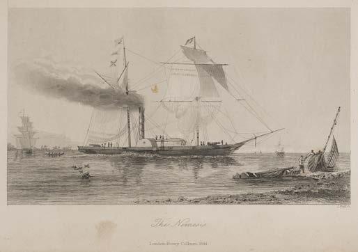 8 Hall (William Hutcheson & William Dallas Bernard). Narrative of the Voyage and Services of the Nemesis, from 1840 to 1843; and of the combined naval and military operations in China: comprising a complete account of the Colony of Hong Kong, and remarks on the character and habits of the Chinese, 2 volumes, 1st edition, London: Henry Colburn, 1844, engraved frontispieces, 4 engraved plates, 3 folding maps (map at end of volume I torn in half without loss), occasional light spotting, Eton leaving inscription at front of volume I, bookplates, contemporary calf gilt, lacking one spine label, one label a title wormed), spines lightly rubbed, small tear at head of volume II, 8vo, together with Athens and Attica: Journal of a Residence there, by Christopher Wordsworth, 2nd edition, 1837 The Nemesis, the first British iron ocean-going warship was captained by William Hall and arrived in Chinese waters in late 1840. It was deployed to great effect during the First Opium War of 1839-42.