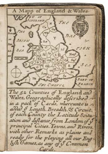 Robert Morden (circa 1650 – 1703). An untitled atlas of 52 counties of England and Wales described in a pack of cards, retaining the 'explanation' card and the general map of England & Wales, bound in contemporary crushed full black morocco gilt, 10 x 7 cm