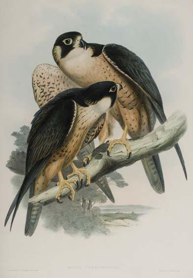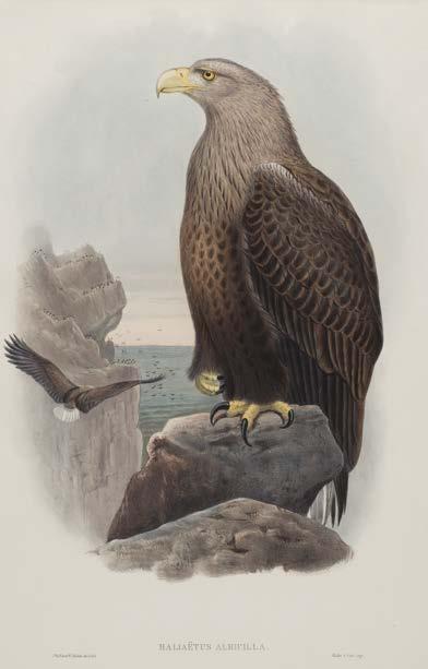 445 Mudie (Robert). The Feathered Tribes of the British Islands, 2 volumes, London: Whittaker & Co.; Edinburgh: Waugh & Innes; Dublin: John Cumming, 1834, titles with hand-coloured engraved vignettes, numerous hand-coloured engraved plates, occasional light scattered spotting, modern light brown half morocco gilt, 8vo, together with: Atkinson (Charles). The Life and Adventures of an Eccentric Traveller, York: printed for the Author, by M. W. Carrall, opposite The Nelson Inn, Walmgate, 1818, woodcut frontispiece and 1 plate, several woodcut vignette illustrations to text, light offsetting and minor scattered spotting, edges untrimmed, original boards, lacking spine, worn, slim 8vo (Rare, only 6 UK institutional locations found), Haggard (Henry Rider). She. A History of Adventure, 1st edition, London: Longmans, Green, and Co., 1887, half-title, 2 chromolithograph plates, original cloth, recased, 8vo, plus other miscellaneous antiquarian and 20th-century publications including titles by Ernest Hemingway, George Orwell, Robert Graves, John Buchan, Evelyn Waugh, and Lawrence Durrell, etc. (3 shelves) £200 - £300