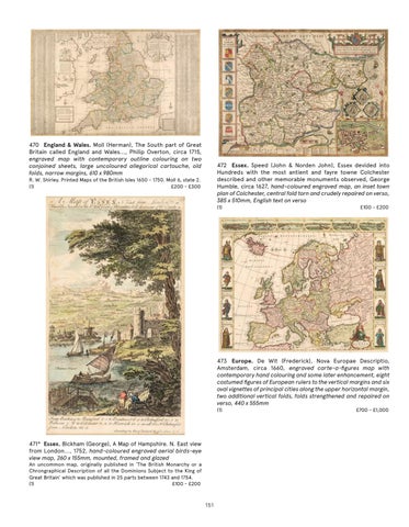 471* Essex. Bickham (George), A Map of Hampshire. N. East view from London..., 1752, hand-coloured engraved aerial birds-eye view map, 260 x 155mm, mounted, framed and glazed An uncommon map, originally published in ‘The British Monarchy or a Chrongraphical Description of all the Dominions Subject to the King of Great Britain’ which was published in 25 parts between 1743 and 1754. (1) £100 - £200