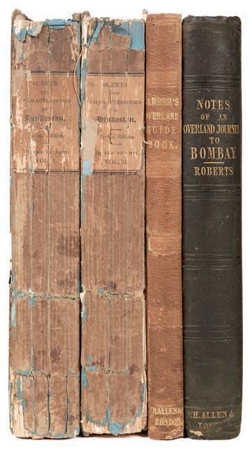 2 Anderson (George Matthew). The Universal Calculator; being a variety of useful cast-up tables, adapted to the use of India merchants agents, traders, &c, &c, &c, with several arithmetical rules, for calculating all mercantile accounts, expeditiously and with facility; also, an alphabetical list of coins, weights & measures, of most parts of India, China, Persia, Arabia, and the Eastern Islands, from the latest authorities, 2nd edition, Calcutta: P. Crichton, 1826, contemporary ownership inscription to title upper margin, lacking final two leaves of appendix, leaves toned and dust-soiled, disbound, 8vo, together with: Radford (William). On the construction of the ark, as adapted to the naval architecture of the present day; on the equipment of vessels, and on steam navigation to India, London: John Weale, 1840, lightly spotted, original blue paper boards, paper title label, worn, joints cracked, 12mo, with Grindlay (Robert Melville). A View of the Present State of the Question as to steam communication with India, London: Smith, Elder and Co, 1837, cartographic frontispiece, map with some marginal damp-staining affecting image, ex-library with library stamps to rear cover, later quarter cloth, worn and marked, 8vo (4) £150 - £200