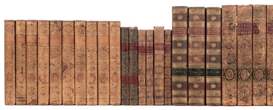 486 Bindings. A large collection of 19th & early 20th-century leather bindings & literature, including Moore’ Irish Melodies, London: Longman, et al, 1846, illustrated by D. Maclise, original gilt decorated green full morocco bound by Webb & Hunt, large 8vo, The Fables of La Fontaine, London: J. C. Nimmo And Bain, 1884, 25 monochrome etchings by A. Delierre, original gilt decorated quarter morocco, large 8vo, Antiquities of the Inns Of Court And Chancery:..., by W. Herbert, London: printed for Vernor and Hood..., 1804, contemporary gilt decorated full calf, large 4to, 60 contemporary gilt decorated leather bindings, some original cloth, some odd volumes, overall condition is generally good/very good, 8vo/folio (6 shelves)