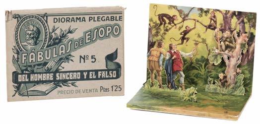 459* German Peepshow. La Fête du Bairam à Constantinople, Das Bairams-Fest in Constantinopel, The Bairam ad Constantinople, circa 1835, hand-coloured lithograph panorama showing two well dressed Turkish gentleman leaning against a cream box containing the title, garlands of flowers hanging from the ceiling, a group of people surrounding them celebrating the Sheker-Bayram (Festival of Sweets), pictorial illustration laid down onto lid of shallow cartonnage box containing the peepshow, lid with five peep-holes, a large circular one in the centre and two smaller circular ones either side towards the edge of the image, 6 accordion-folding cut out panels with paper bellows, depicting very busy street scene with a tight-rope walker, street dancers, puppeteer, hookah smokers, etc., some light offsetting to a few bellows, minor spotting, box decorated with yellow paper to sides, red paper to rear panel, blue grey sugar paper pasted to verso of rear panel, presentation inscription ‘For my dea little Darlisa. From his affec..ate Putisa. New Year’s Day. 1842’, 16.8 x 22.8 x 1.6 cm (h x w x d), together with modern archival portfolio box