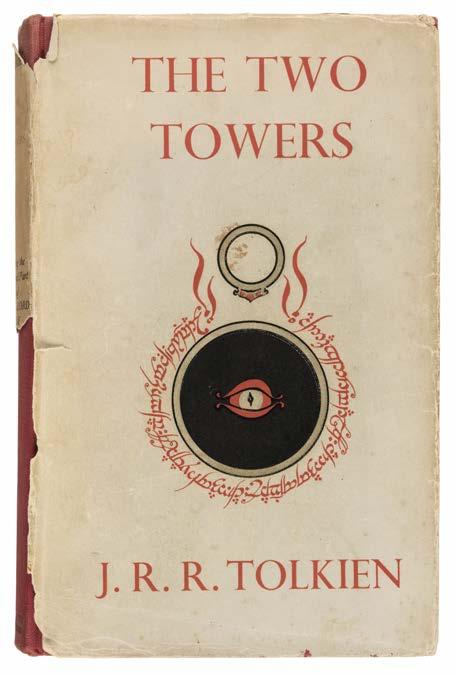 910 Tolkien (J. R. R.). The Lord of the Rings: The Two Towers, 1st edition, 2nd impression, 1955; The Return of the King, 1st edition, 2nd impression, November 1955, folding map at rear of each, light toning to Return of the King rear endpaper, top edge red, original cloth gilt (Return of the King spine faded, Two Towers faded at head), dust jackets, Two Towers spine toned and torn (torn strip mostly retained), Return of the King jacket torn into 3 pieces, spine toned and rubbed with chips and tears, 8vo (2)