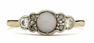 15 An 18ct gold opal cabochon and diamond dress ring, estimated total diamond weight 0.15ct, stamped 18ct Plat, ring size O1/2, 2.2g £120 - £180