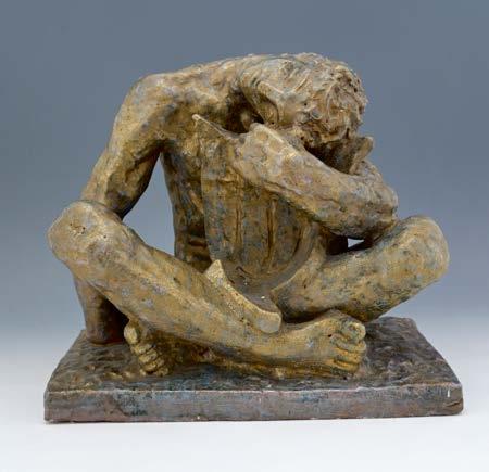 27 An Arts and Crafts carved boulder opal pendant, in the style of Wilhelm Scmidt, modelled as a crab, suspended on a gold loop stamped 18 ct, 5cm £80 - £120
