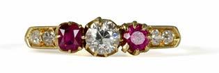 8 An 18ct gold diamond and ruby dress ring,estimated total diamond weight 0.50ct, H-J colour, Si2-P1 clarity, stamped 18c, ring size S, 3.2g £200 - £300