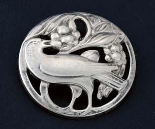 35 Georg Jensen, a silver brooch, modelled as a bird eating berries, model number 175, signed Georg Jensen, import marks for London 1959, diameter 4.6cm, 13.3g