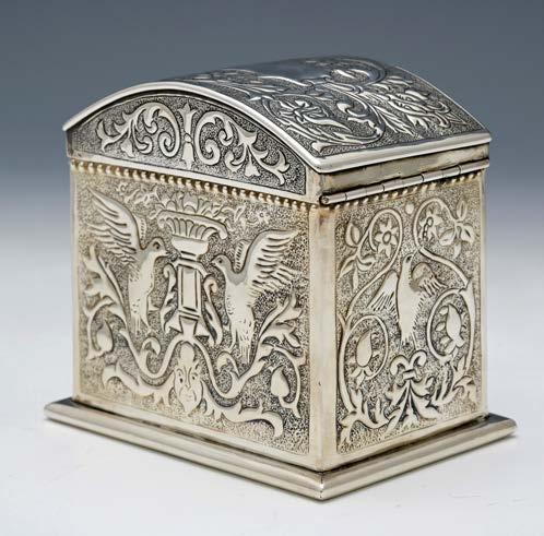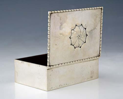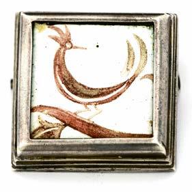 30 Georg Stoger for Wiener Werkstatte, a Secessionist silver and enamelled brooch, circa 1915, the square plaque painted with a bird on branch, in brown enamel., within a stepped silver frame, stamped marks WW 900 GSt, 2.6cm square, 8.8g £300 - £500