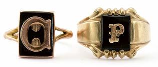 11 Two onyx signet rings, one stamped 10K, one stamped 9ct, ring sizes L and T, 5.6g. £150 - £200