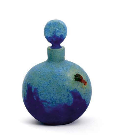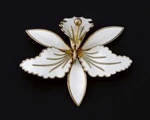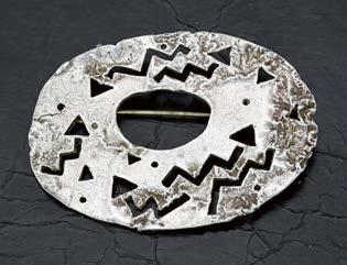 20 Henry William King, an Arts and Crafts silver and enamelled brooch, the central convex roundel painted with a kingfisher on a riverbank, within open C scroll and foliate wreath frame, stamped marks and sterling, signed to the enamel HWK, 3.8cm diameter, 11.5g £80 - £120 21