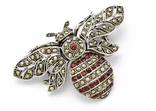 32 An Art Deco silver, garnet and marcasite bee brooch, modelled with articulated wings, bands of red and silver facet cut stones, 5.5cm wide, 14.3g £40 - £60