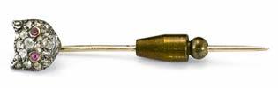 1 An early 20th century rose and old-cut diamond and ruby fox head stickpin, length 5.1cm, 2.5g. £200 - £300