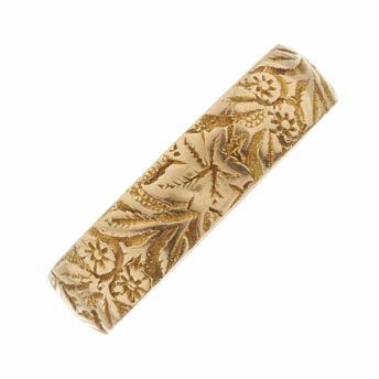 12 A late Victorian 18ct gold floral wedding band ring, hallmarks for Birmingham 1892, ring size O, 4.5g £150 - £200