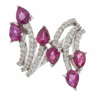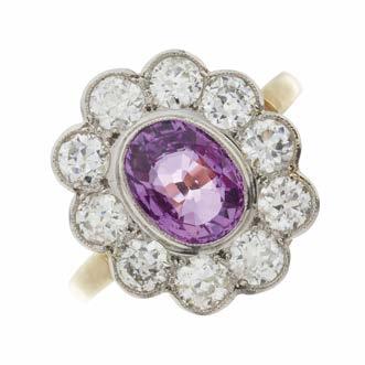 44. An 18ct gold pink sapphire and brilliant-cut diamond cluster ring, sapphire estimated weight 2.10ct, estimated total diamond weight 1.60ct, H-I colour, SI2-P1 clarity, band stamped 18ct Plat, ring size O1/2, 6.3g