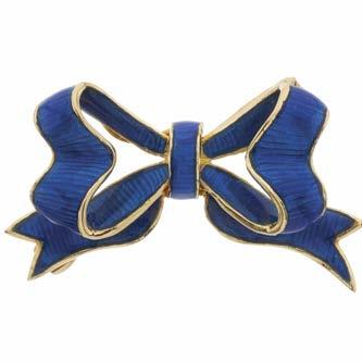 36. An 18ct gold blue guilloche enamel bow pendant, may also be worn as a brooch, maker’s marks for Deakin & Francis, hallmarks for Birmingham 1998, length 3.3cm, 7.6g